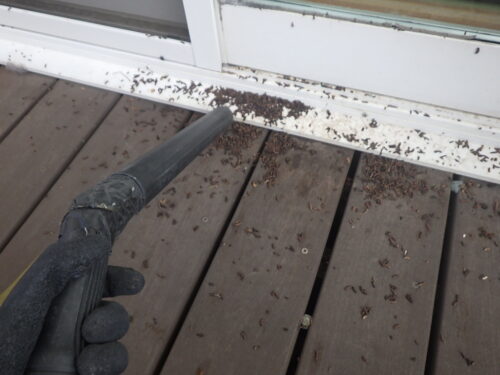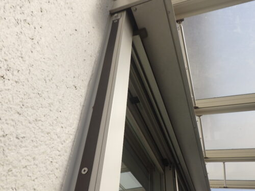 以前は隙間をブラシ・プレート等で塞いでおりましたが、追い出したコウモリが窓上の角部分に